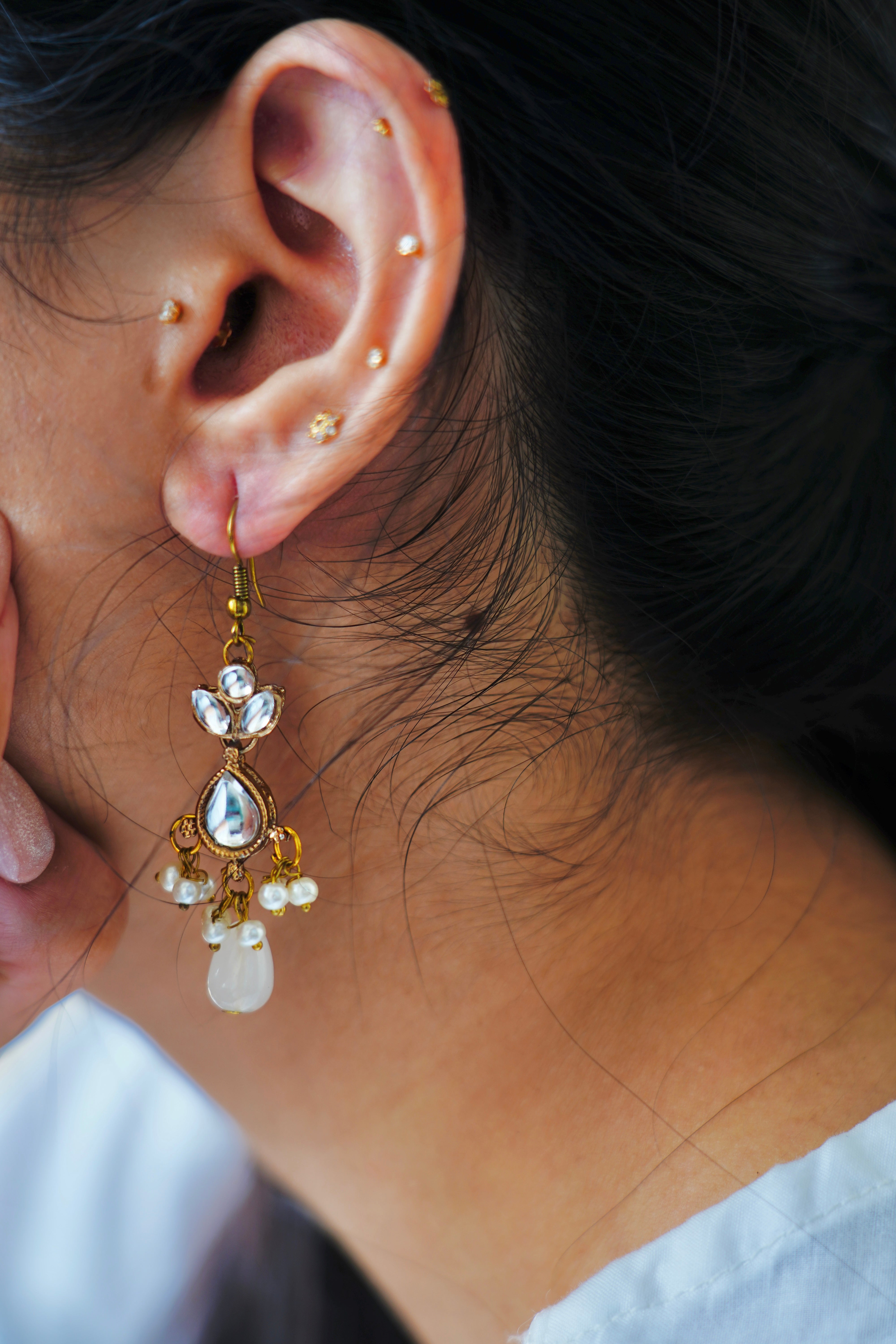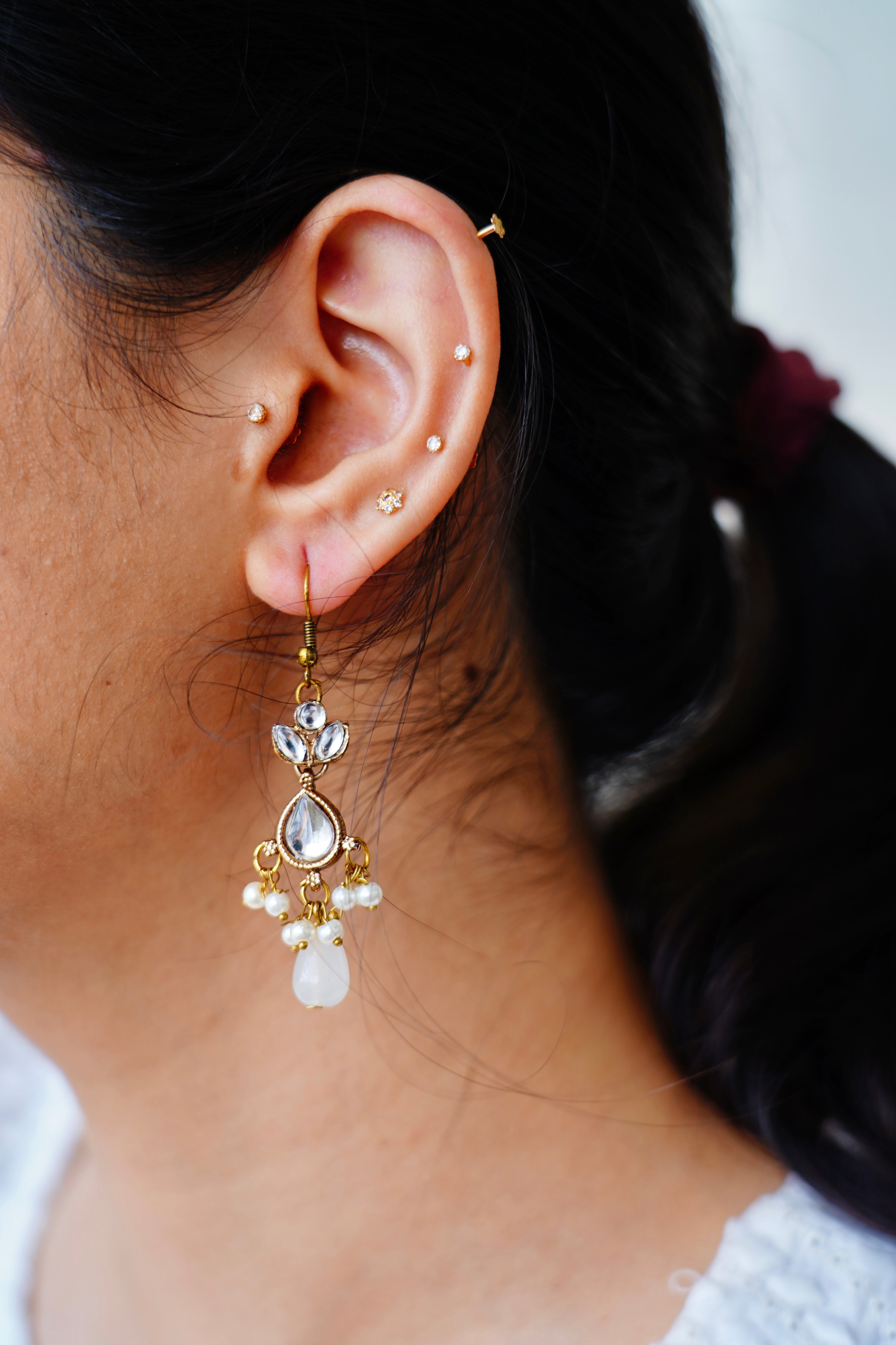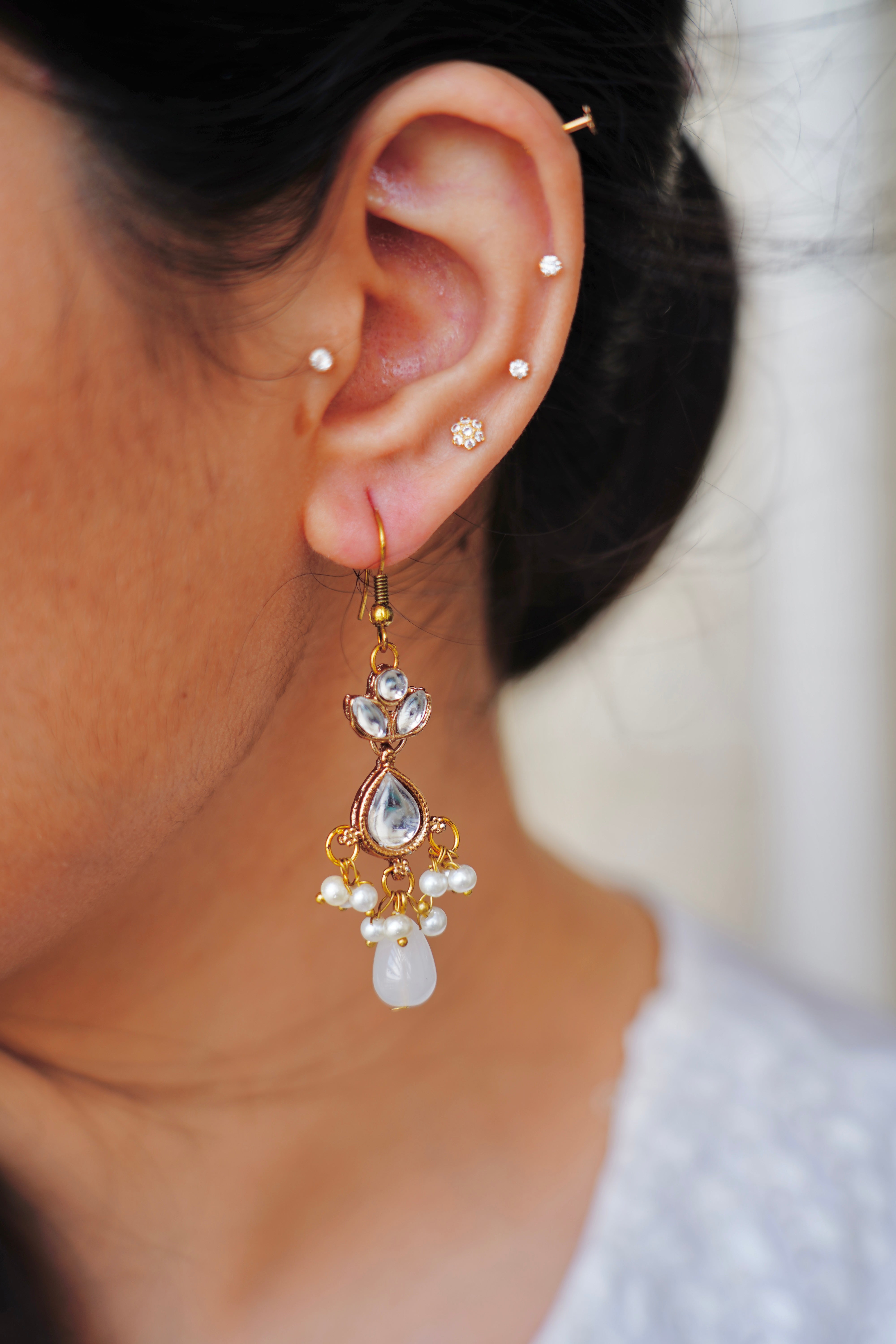 Delicate kundan work and plated earrings perfect for everyday wear.