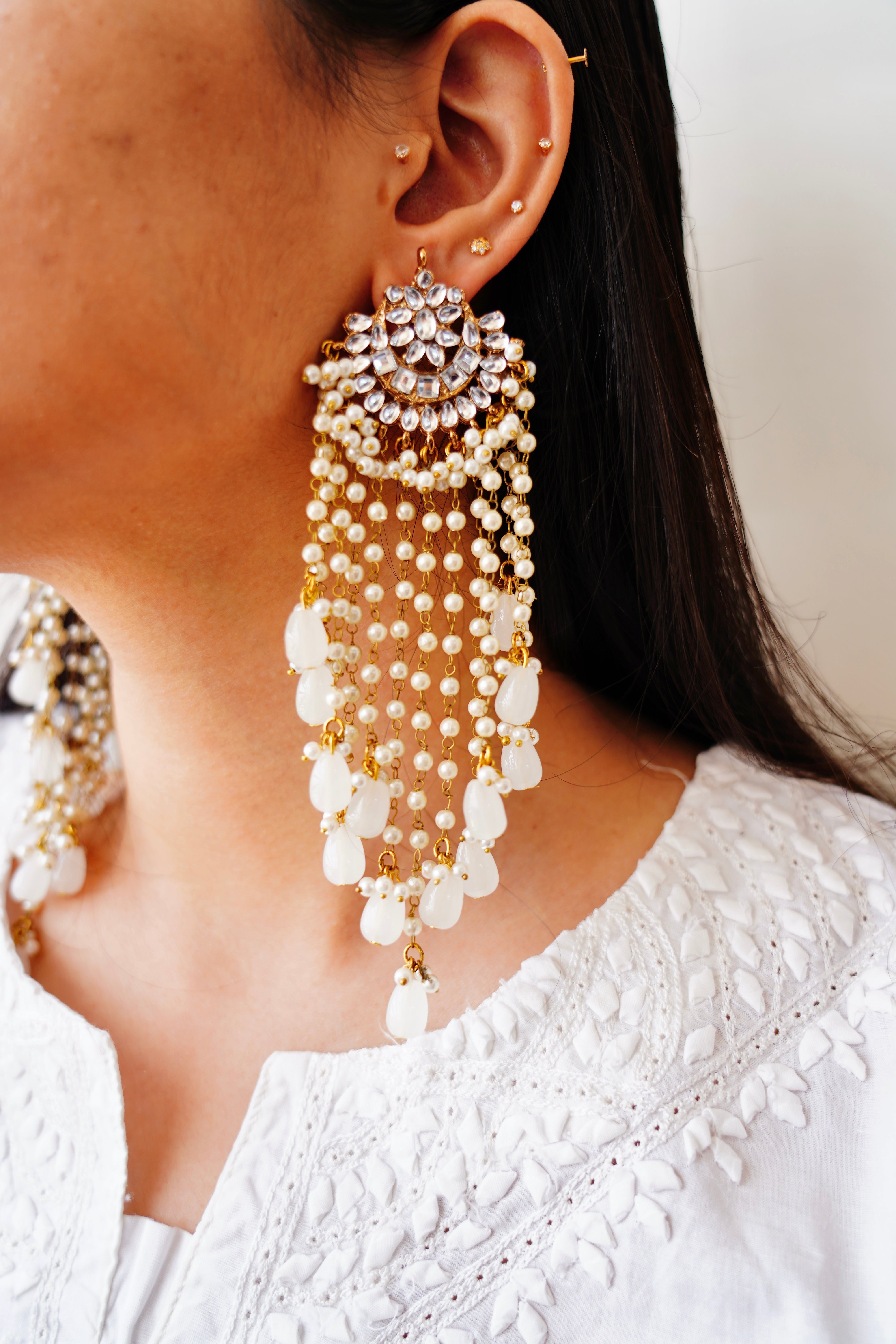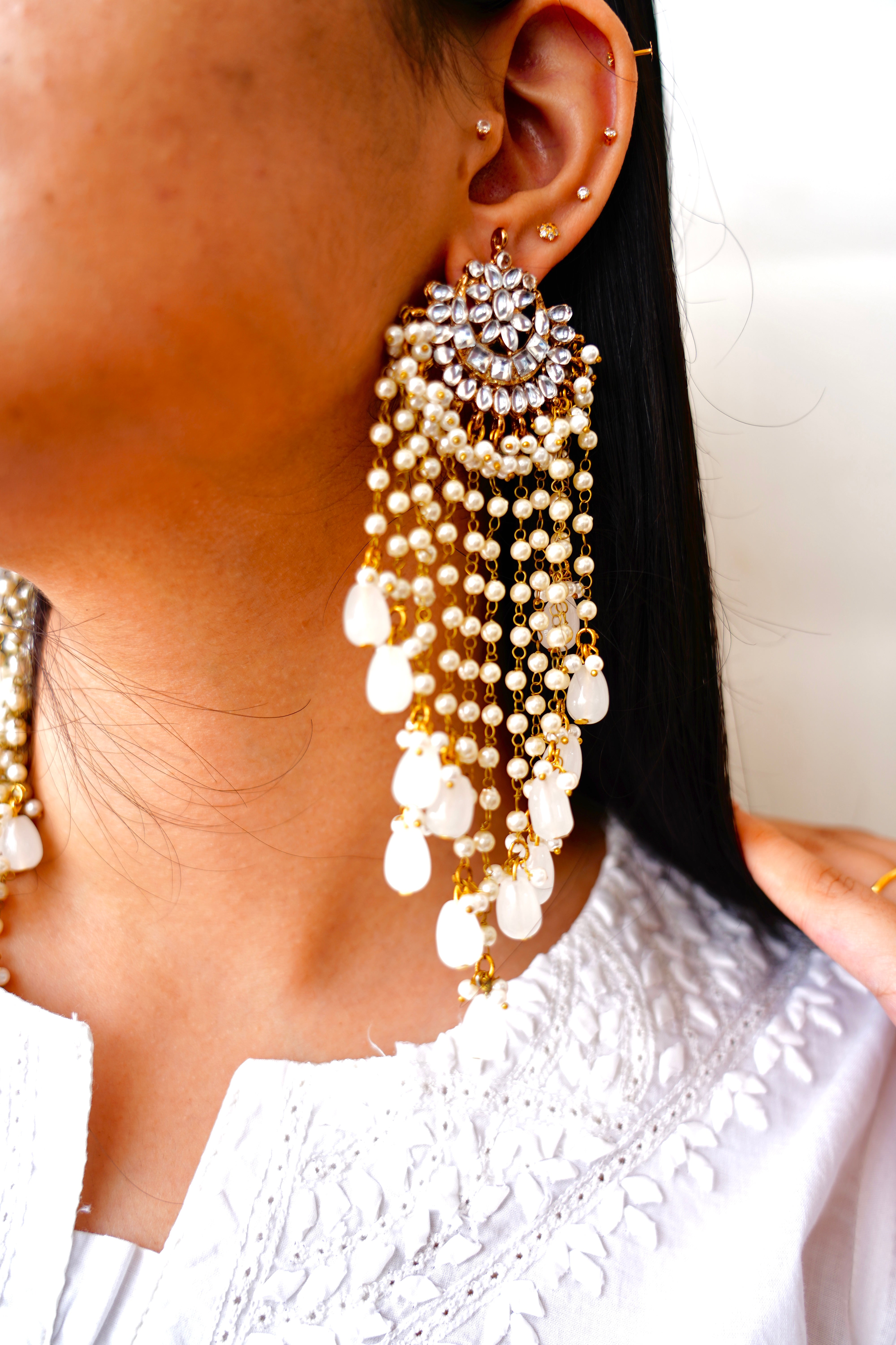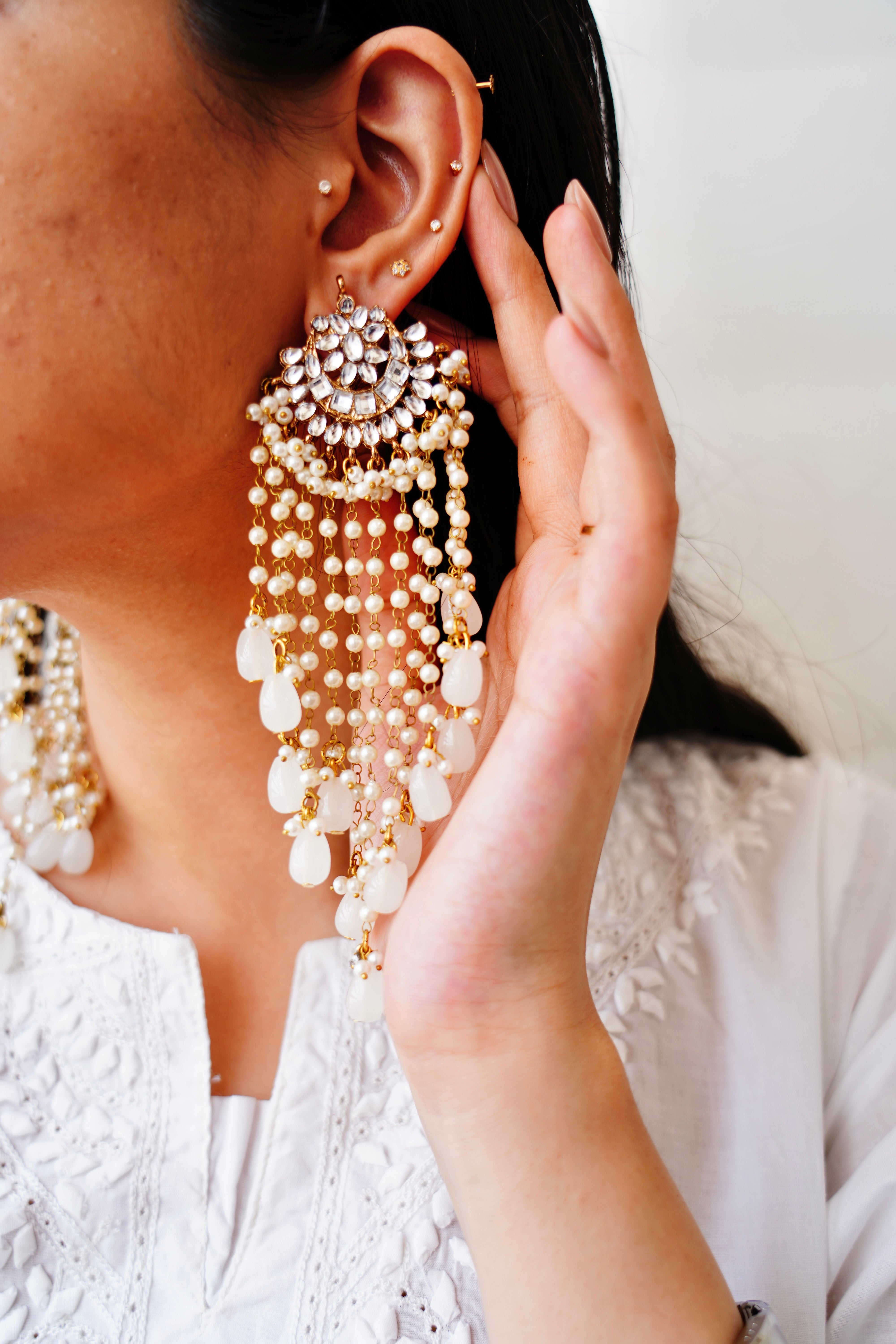Kundan embellished antique gold motif with handwoven pearl tassels and semi precious stones at the ends.